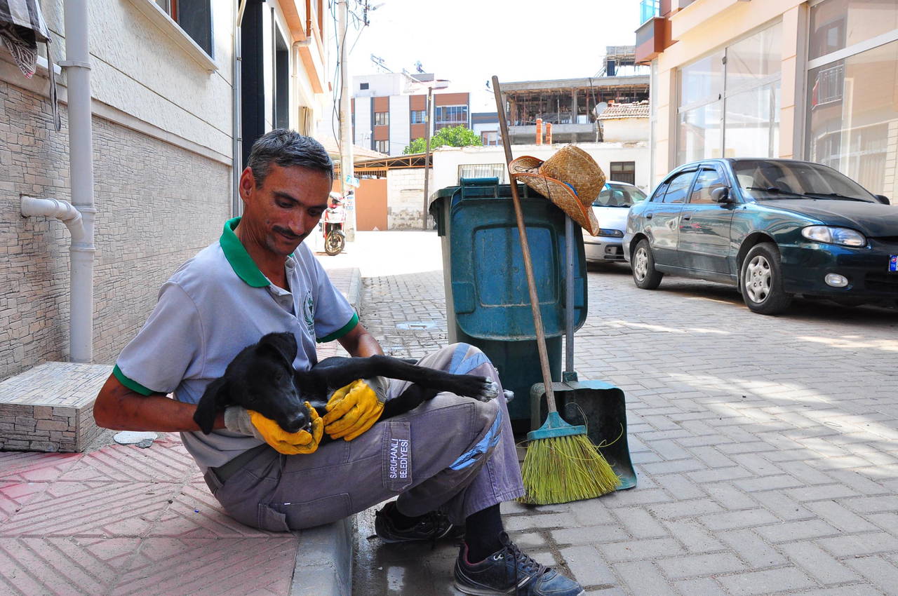 Saruhanlı ilçesi Saruhanlı Mahallesi'nde yalnız yaşayan Mustafa Özdemir, bir ay önce ilçe belediyesinde temizlik işçisi olarak işe başladı. Özdemir, ilk iş gününde yanına gelen köpeğin karnını doyurdu. Özdemir'in başını sevip okşadığı köpek, o gün yanından hiç ayrılmadı.