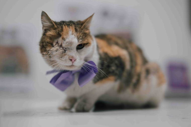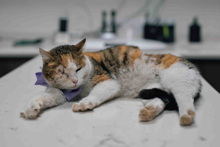 Sokakta yaşayan 8 aylık Calico cinsi dişi kedi Bergen, hayvanseverler tarafından koruma altına alındı ve veteriner hekimlerce rehabilite edildi.