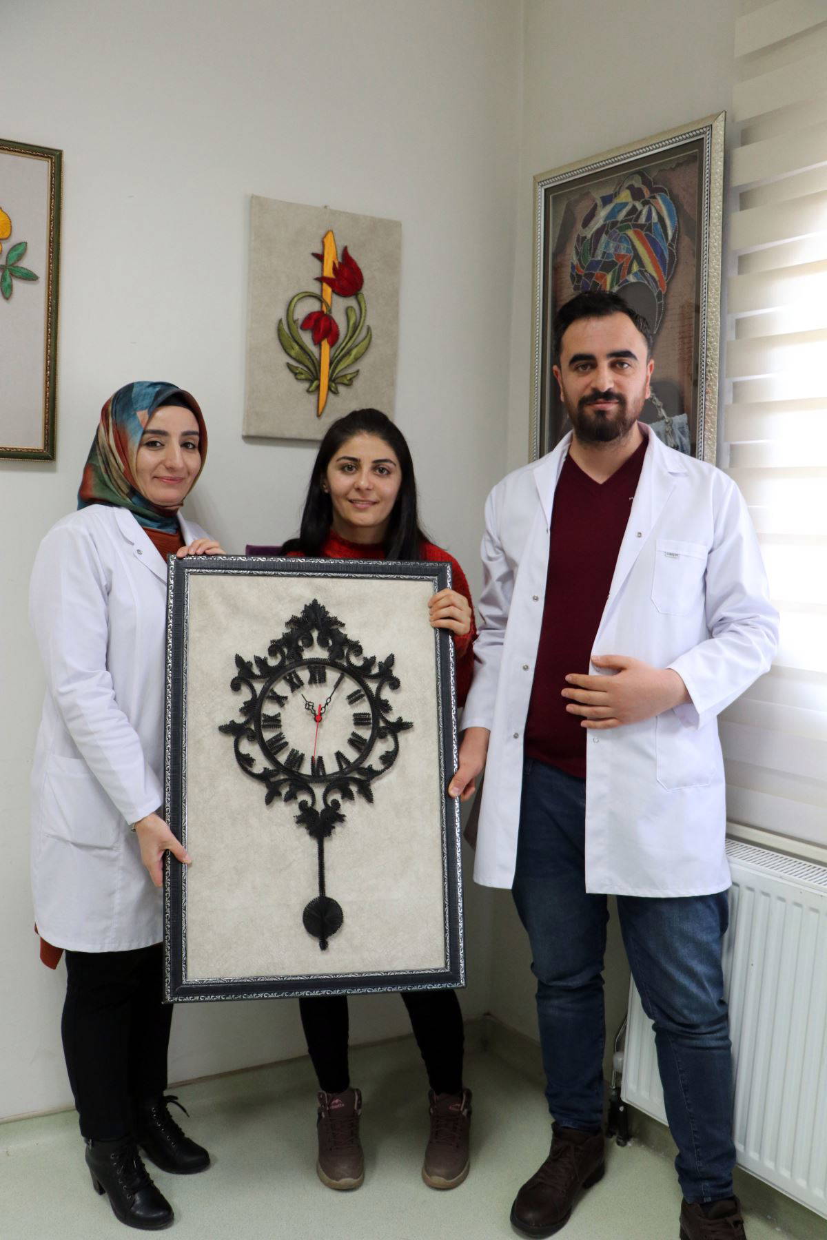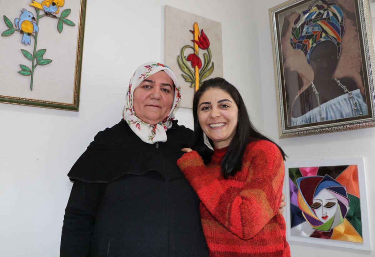 Van'ın İpekyolu ilçesinde hizmet veren Gündüz Bakım Rehabilitasyon ve Aile Danışma Müdürlüğü Merkezi'nde engelli bireyler, resim, müzik, ahşap boyama ve filografi kurslarında haftada 5 gün eğitim alma imkanı buluyor. Merkeze gelen Sitti ve Halit Timur’un 9 çocuğundan serebral palsili, Van YYÜ Resim Öğretmenliği Bölümü 4’üncü sınıf öğrencisi Nahide Timur, filografi sanatıyla yaşama tutunuyor. Sağ bacağını ve elini kullanamadığı için sol el ve ayağı ile tahta plakaya çivi çakarak filografi tablolar yapan Timur, kendisine destek olan ailesi ve öğretmenine teşekkür etti. Kızının çalışmalarını izleyen Sitti Timur, kızıyla gurur duyduğunu söyledi.