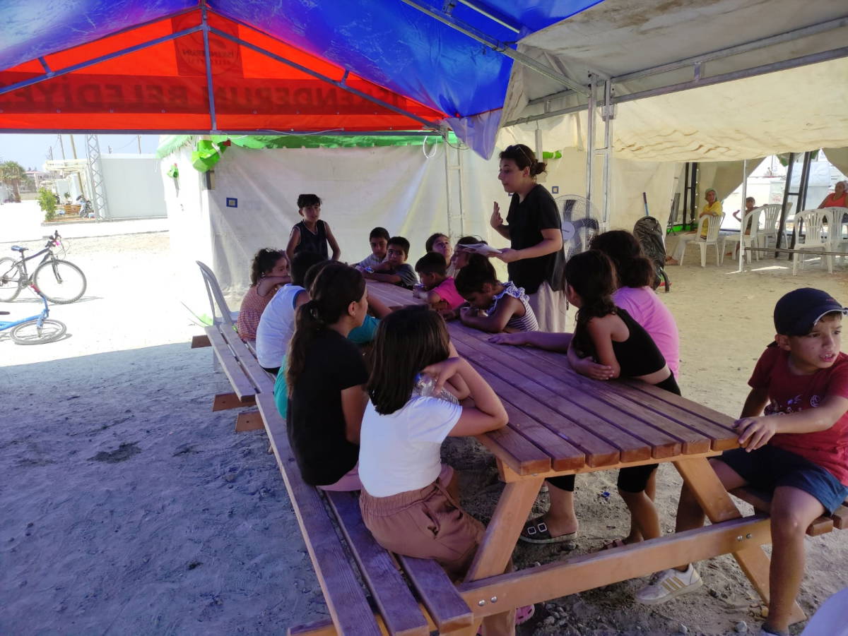 Teması 'Çocuklarımızın gülsün diye... Yeniden Başlamalı' başlığıyla düzenlenen yaz okulu Hatay'ın İskenderun ilçesinde bulunan konteyner kentlerde yapılıyor.