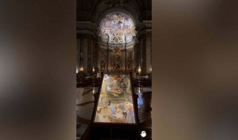 Kilise tavanında, ünlü İtalyan mimar Andrea Pozzo tarafından yapılan freskler, Cizvit tarikatının kurucusu Loyolalı Aziz Ignatius’un cennete kabul edilişini tasvir ediyor. Freskleri daha yakından ve farklı bir açıdan görmek isteyen ziyaretçiler, kilisenin ortasına yerleştirilmiş aynayı kullanarak kendilerine özel bir deneyim sunuyor. Ancak ayna, yalnızca freskleri incelemek için değil, selfie çekimleri için de bir cazibe merkezi haline gelmiş durumda.