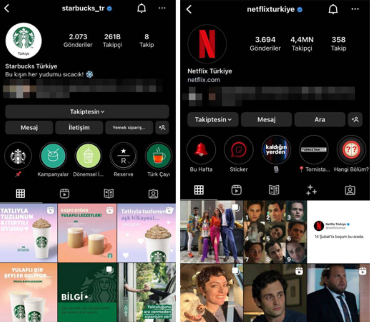 Starbucks ve Netflix'in Instagram sayfaları: