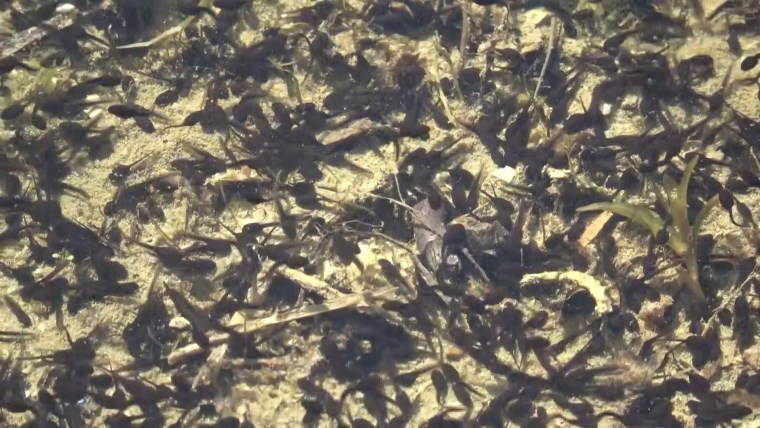 Samsun'da baraj suları altında kalmış mezarlar ve küçük bir su birikintisi içinde kalmış binlerce balık yavrusu ilginç görüntüler oluşturdu.