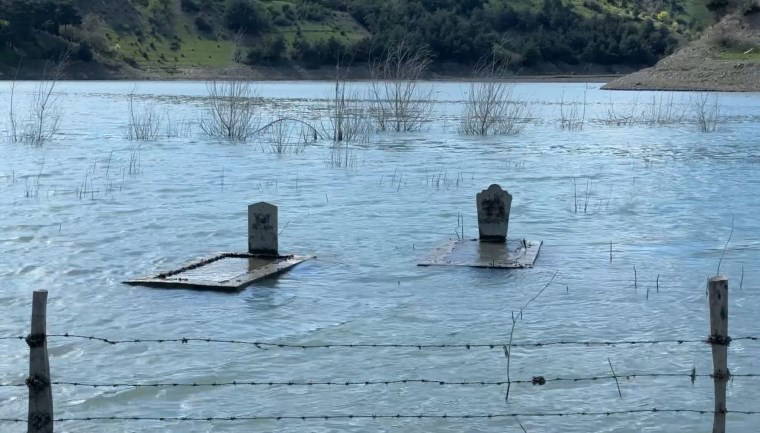 Vezirköprü Şahinkaya Kanyonu'nun hemen yanı başında sular altında kalmış mezarlar ilgi çekiyor.