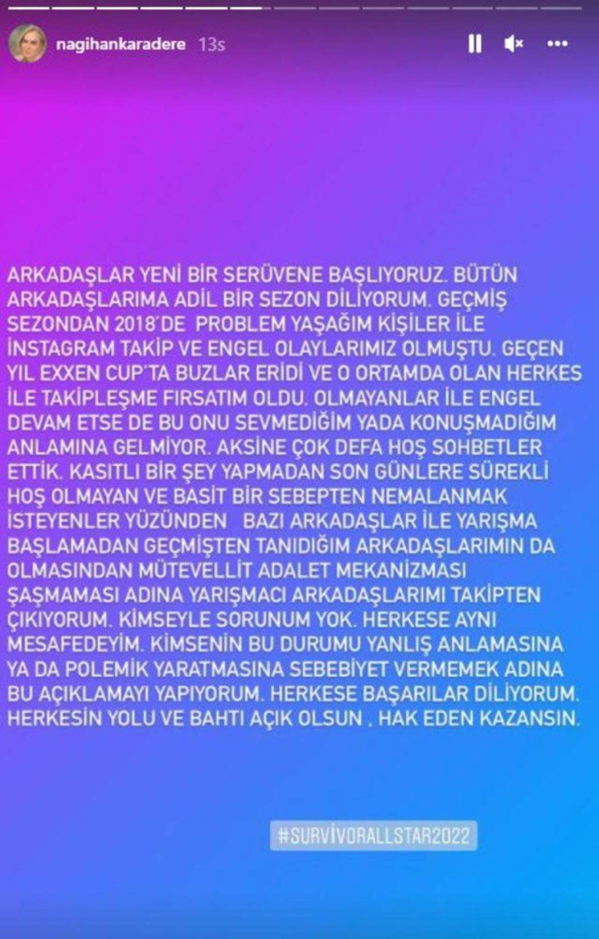 Survivor Nagihan’ın kendisini engellediğini bu sebeple de