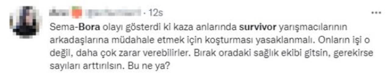 Survivor Sema Aydemir, oyun esnasında kafasına ve boynuna aldığı darbe sonucu parkur sonunda yere yığıldı. Yerde hareketsiz yatan Sema Aydemir'e ilk müdahaleyi takım arkadaşı Bora Edin yaptı.