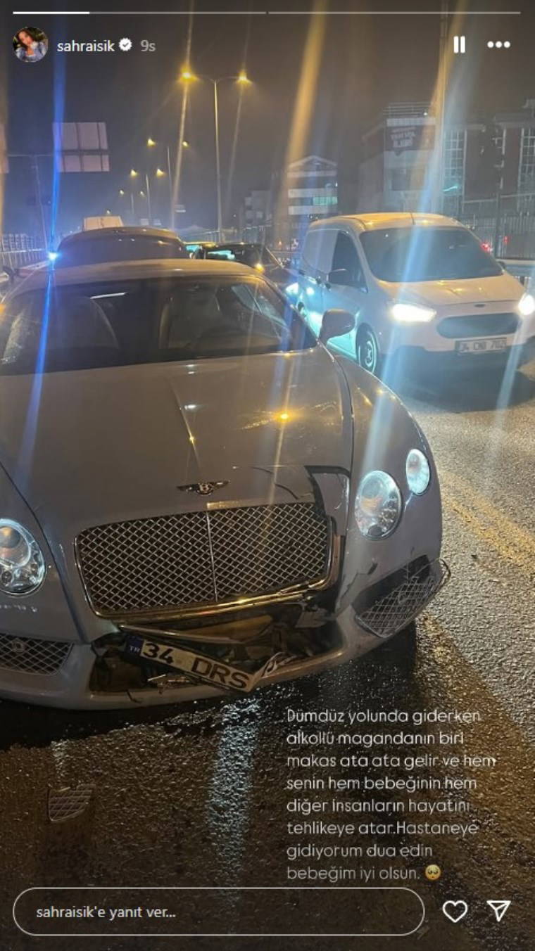 "Dümdüz yolunda giderken alkollü bir maganda makas ata ata geldi ve hem benim, hem bebeğimin, hem de diğer insanların hayatını tehlikeye attı. Hastaneye gidiyorum, dua edin bebeğim iyi olsun."