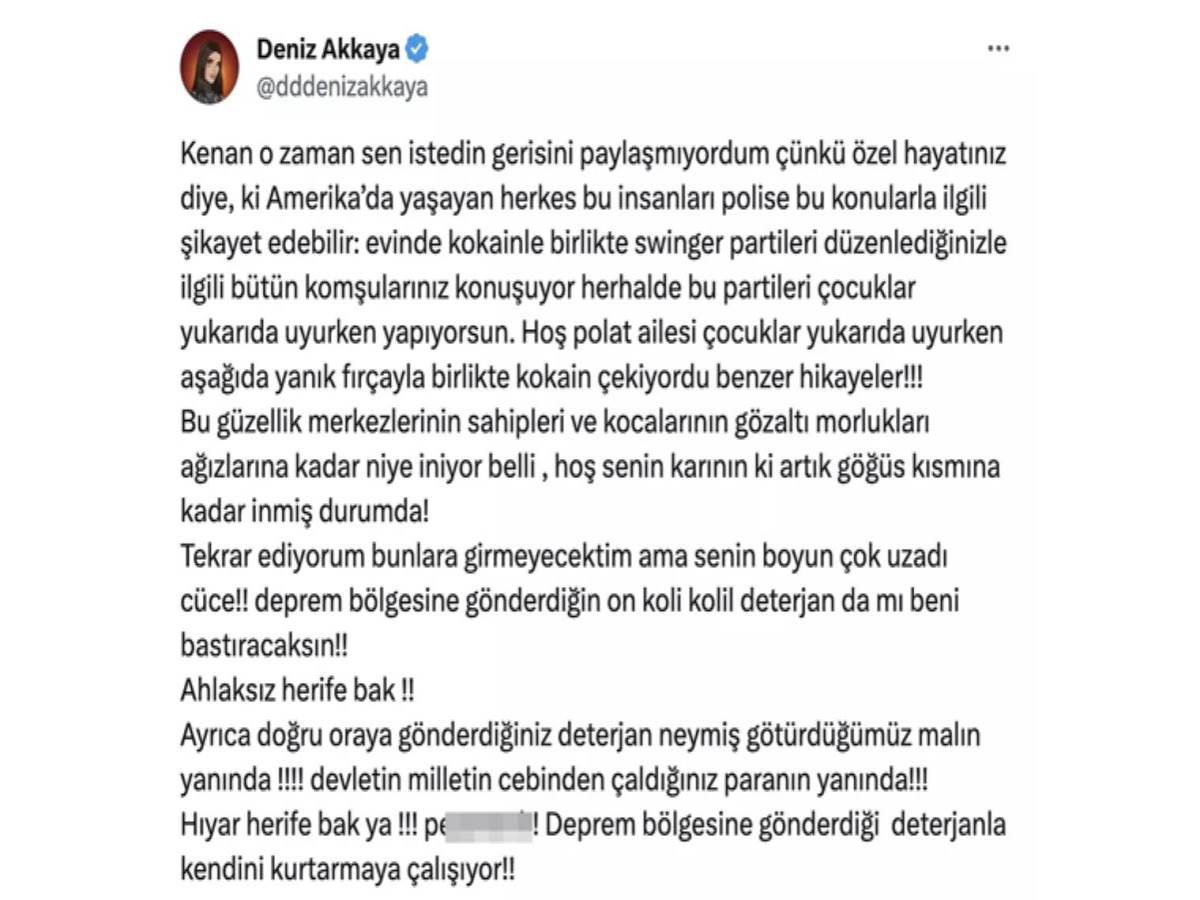 Bu yanıtın ardından da Deniz Akkaya, Kenan Özkan'a Twitter'da küfürlerle dolu bir cevap verdi.