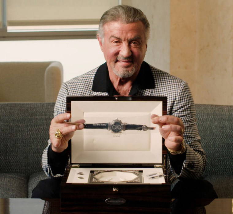 Sylvester Stallone aynı zamanda fiyatı 100 bin ila 200 bin dolar arasında değişen Audemars Piguet Royal Oak Tourbillon 50. Yıl ve gravürlü Cartier Pasha Seatimer saatleriyle de yollarını ayırıyor.
