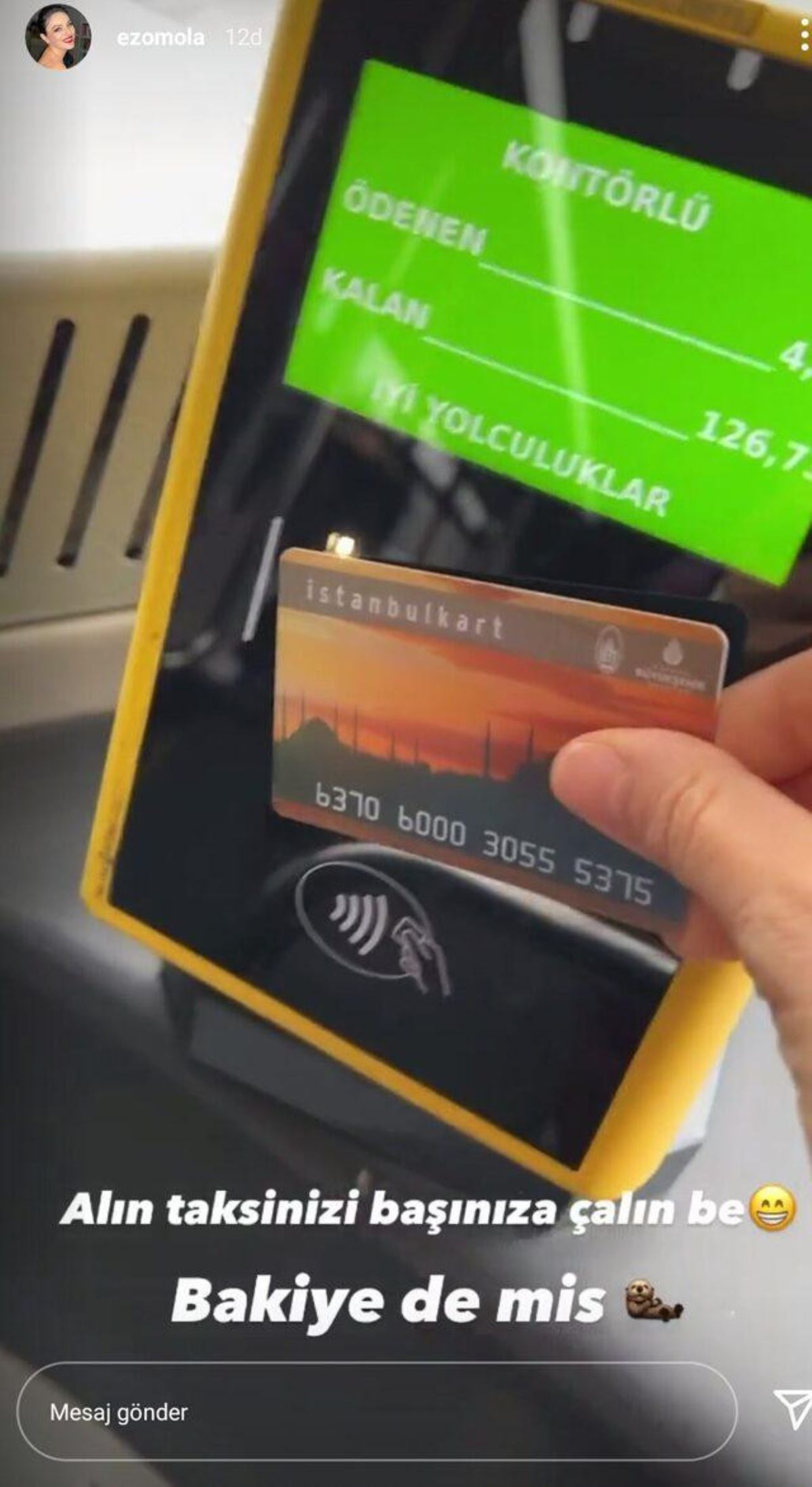 Taksi bulamayan ünlü oyuncu İstanbul Kartı'nı kullanarak belediye otobüsüne bindi.