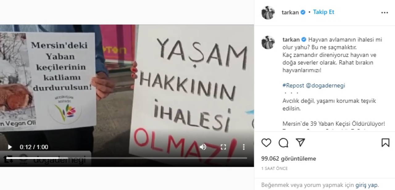Sosyal medyadan Doğa Deneği'nin gönderisi paylaşan ünlü sanatçı, "Hayvan avlamanın ihalesi mi olur yahu? Bu ne saçmalıktır? Kaç zamandır direniyoruz hayvan ve doğa severler olarak. Rahat bırakın hayvanlarımızı!" ifadelerini kullandı.