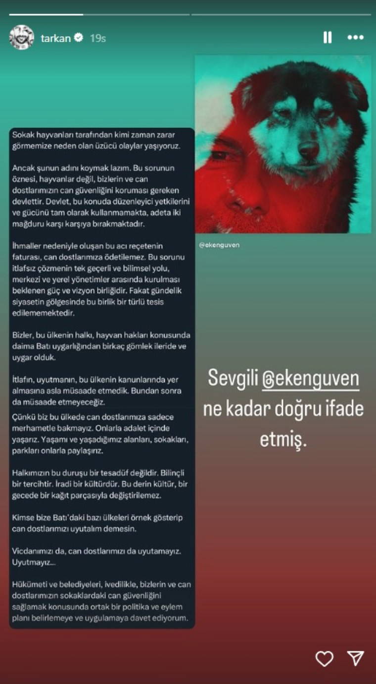 Tarkan da tepki gösterenler arasına katıldı. Sosyal medya platformu X'ten Güven Eken adlı kullanıcının paylaşımını yeniden paylaşarak "Ne kadar doğru ifade etmiş" diye yazdı.