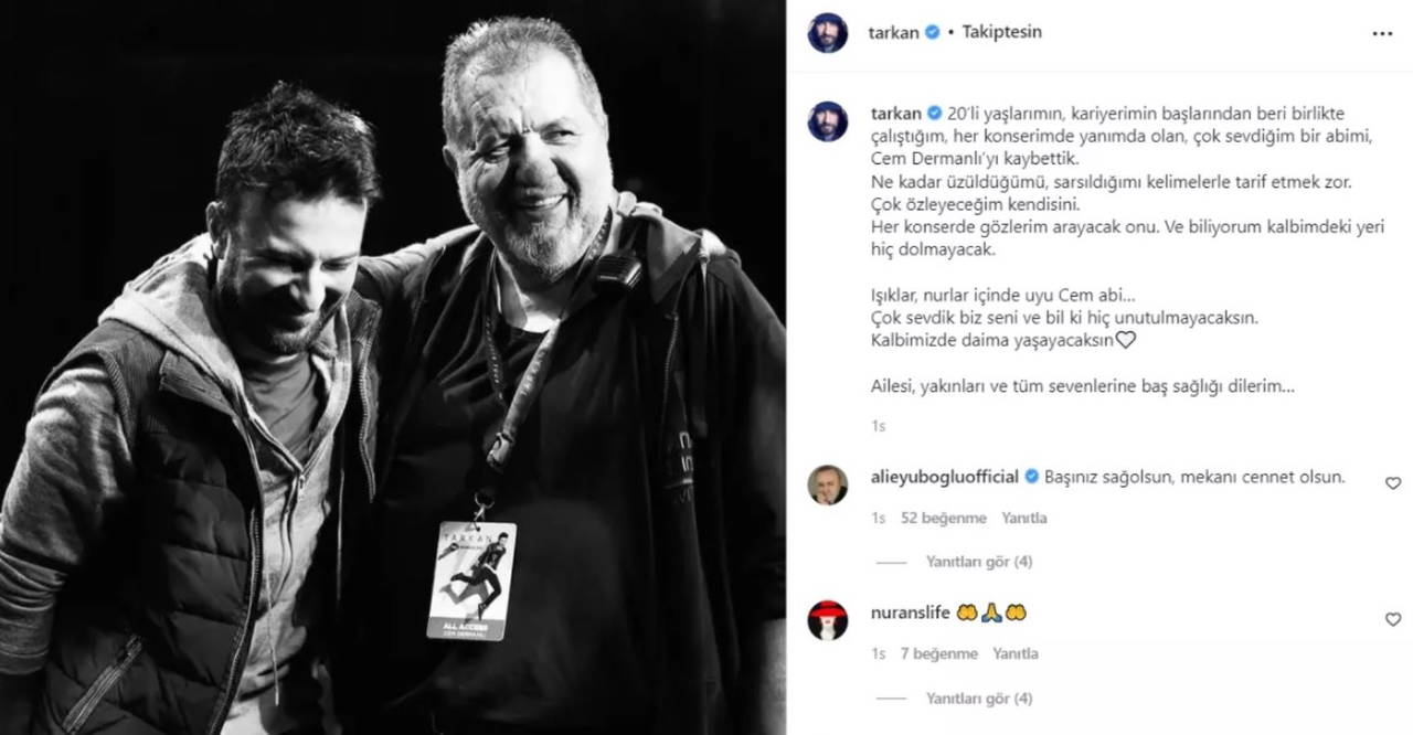 Ünlü sanatçı Tarkan, öğle saatlerinde aldığı acı haberle yıkıldı. Ünlü isim, müzik yolculuğuna başladığı ilk günden bu yana yanında olan Cem Dermanlı'nın hayatını kaybettiğini açıkladı. Sanatçı, acı haberi kişisel sosyal medya hesabından duyurdu.