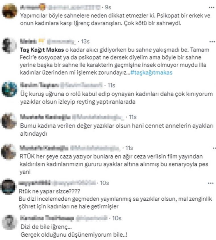 Başrollerinde Ozan Güven, Ekin Koç, Serra Arıtürk, Hande Ataizi, Burak Yörük ve Hüseyin Avni Danyal'ın yer aldığı Kanal D ekranlarının yeni dizisi Taş Kağıt Makas'taki bir sahne izleyicileri sinirlendirdi.