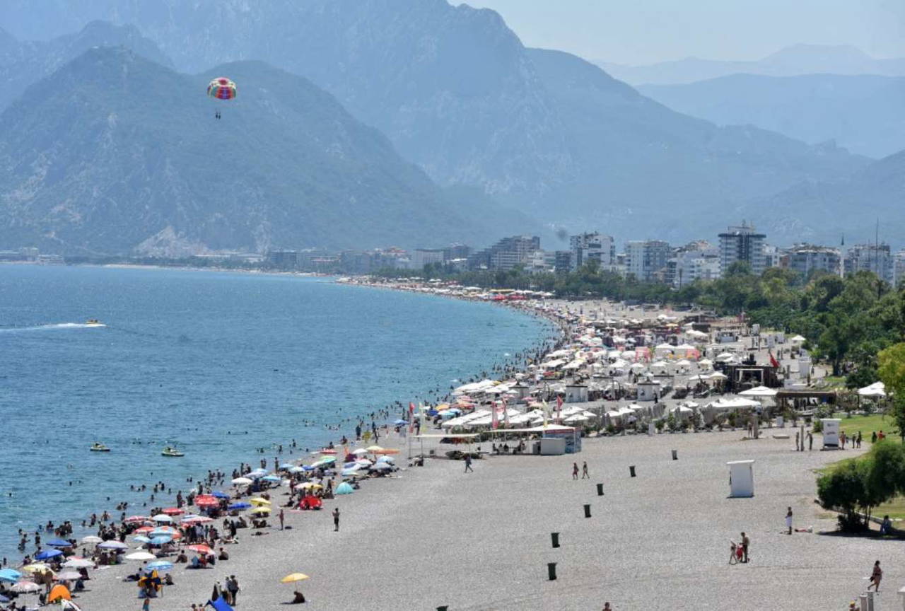 Antalya'da da Konyaaltı Sahili'nde bazı tatilcilerin Akdeniz'in mavi sularında kulaç atarak serinlediği, bazılarının ise kumsalda güneşlenmeyi tercih ettiği görüldü. Bazı tatilciler de sahil bandında bisiklet sürüp yürüyüş yaptı.