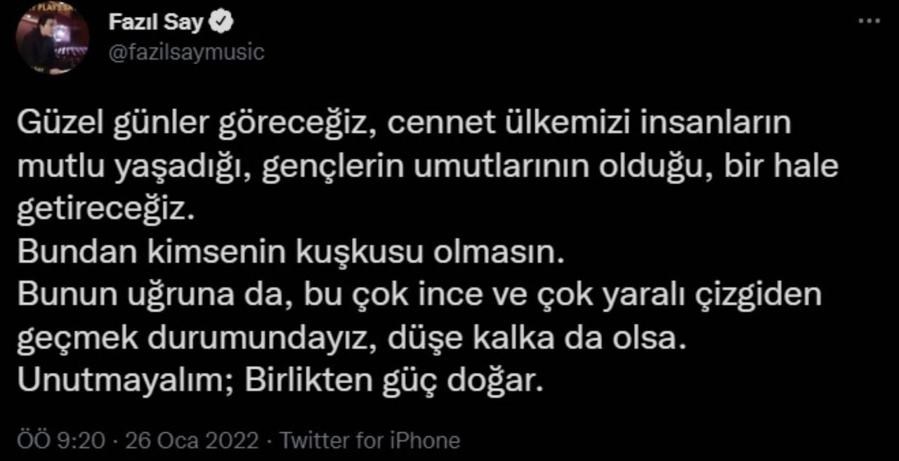 Tartışmalar sürerken, Fazıl Say kendisine yönelik eleştirilere Twitter’dan yanıt verdi.