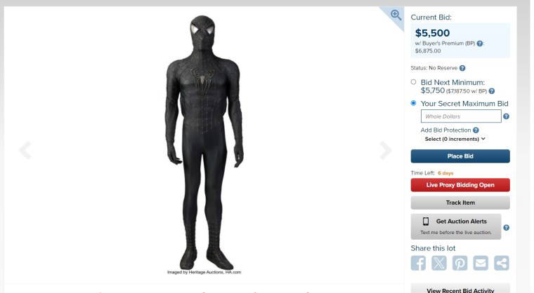 Sam Raimi'nin yönetmenliğini yaptığı 2007 yapımlı Örümcek Adam 3 filminde Tobay Maguire'ın giydiği simbiyot Spider-Man kostümü açık arttırma ile satışa çıktı.