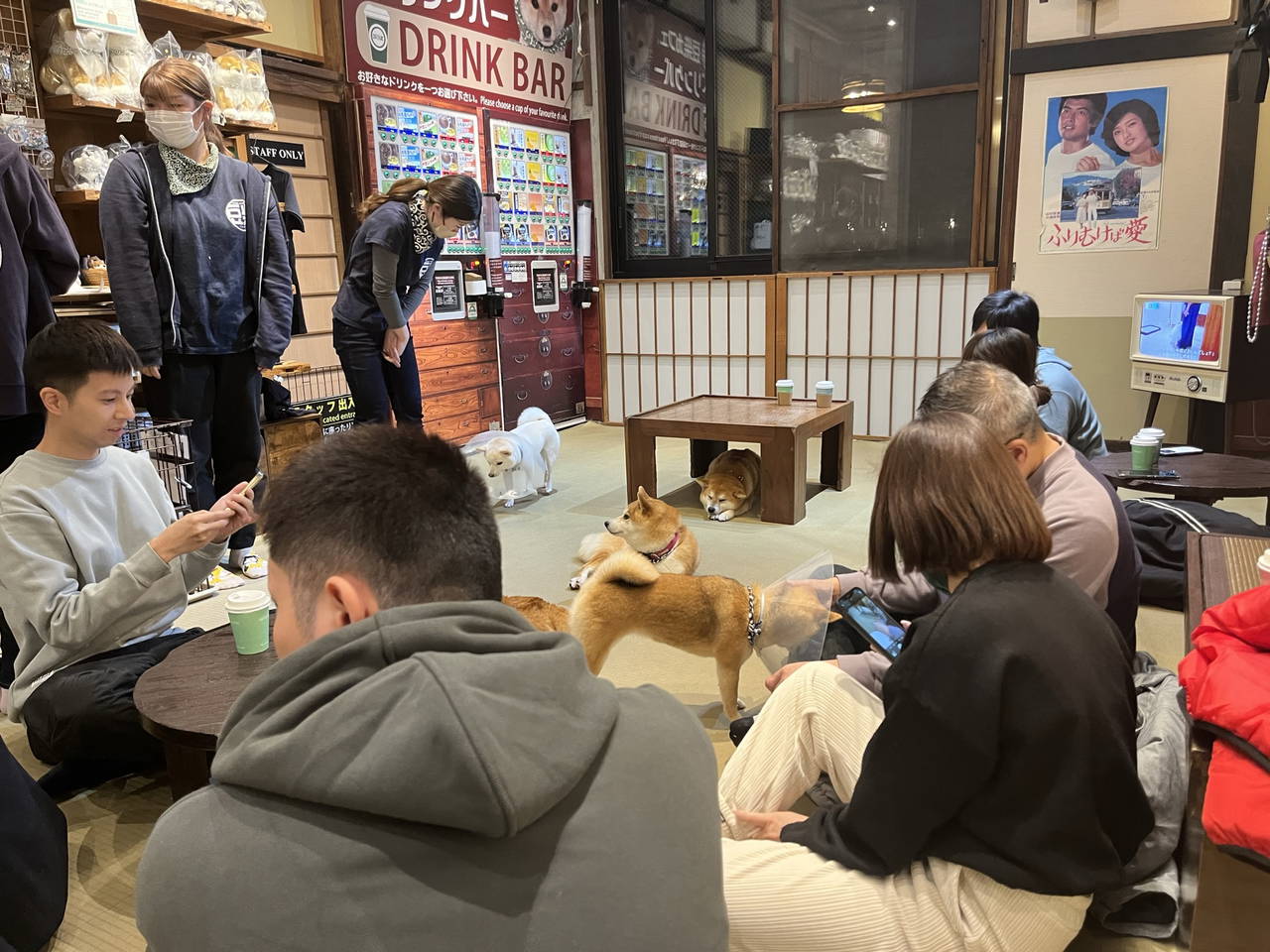 Takeshita Caddesi’ndeki Japonya kökenli av köpeği Shiba Inu cinsinden daha küçük Mame Shiba yavru köpeklerin bulunduğu kafede, hayvan severler ve çocuklar ücret karşılığında yarım saat yavru köpeklerle birlikte zaman geçiriyor.