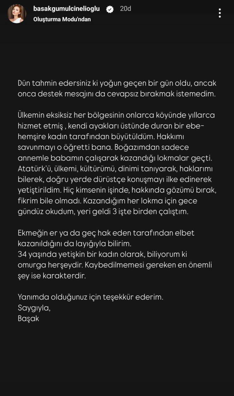 Instagram hesabından açıklama yapan Başak Gümülcinelioğlu, şu ifadeleri kaydetti:
