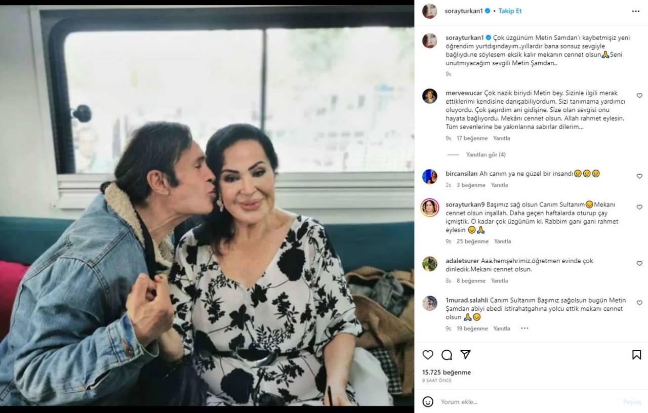 Instagram'dan Şamdan ile birlikte çekilmiş bir fotoğrafını paylaşan Şoray, "Çok üzgünüm. Metin Şamdan'ı kaybetmişiz. Yurt dışındayım, yeni öğrendim. Yıllardır bana sonsuz sevgiyle bağlıydı. Ne söylesem eksik kalır, mekânın cennet olsun. Seni unutmayacağım sevgili Metin Şamdan" ifadelerini kullandı.