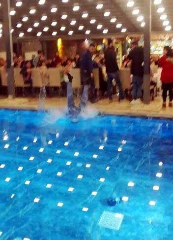 Geceye katılanların havuzdan çıkardığı Keser, kulise gidip üzerini değiştirdikten sonra tekrar sahneye geldi.