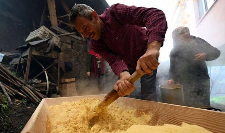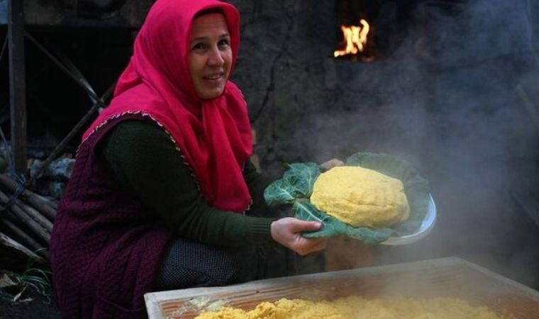 Tarlalarında yetişen bal kabaklarını toplayıp sabahın erken saatlerinde kazanda pişirmeye başlayan aile üyeleri, ahşap ekmek teknesinde mısır ununu eleyip tuz ve az miktarda buğday unuyla buluşturuyor.