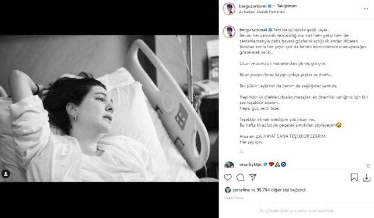 "Biraz yorgun, biraz kaygılı, çokça şaşkın ve mutlu. Bin şükür Leyla'nın da benim de sağlığımız yerinde. Hepinizin iyi dilekleri, duaları, mesajları en önemlisi varlığınız için bin kez teşekkür ederim. Hepsi güç verdi bize. Teşekkür etmek istediğim çok insan var. Bu hafta biraz böyle geçecek şimdiden söyleyeyim. Ama en çok hayat sana teşekkür ederim. Her şey için."