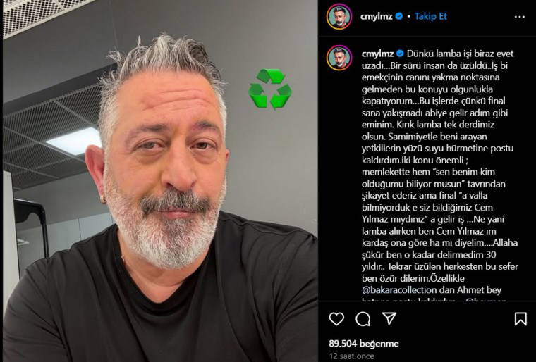 "Dünkü lamba işi biraz evet uzadı… Bir sürü insan da üzüldü. İş bir emekçinin canını yakma noktasına gelmeden bu konuyu olgunlukla kapatıyorum… Bu işlerde çünkü final 'sana yakışmadı abi'ye gelir adım gibi eminim. Kırık lamba tek derdimiz olsun. Samimiyetle beni arayan yetkililerin yüzü suyu hürmetine postu kaldırdım.