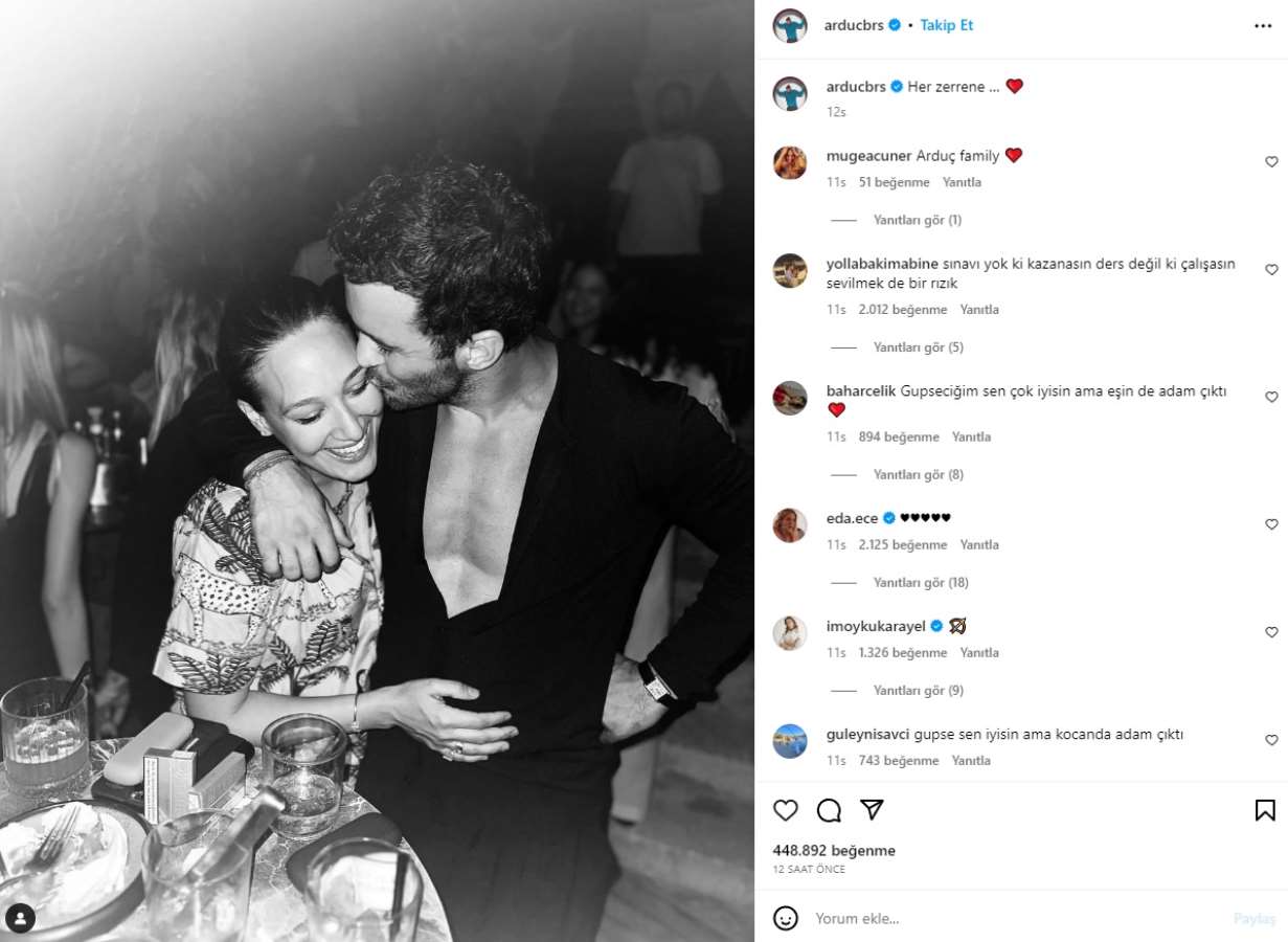 Sosyal medyada pek paylaşımda bulunmayan Arduç, eşi Gupse Özay'a adeta aşkını ilan etti.
