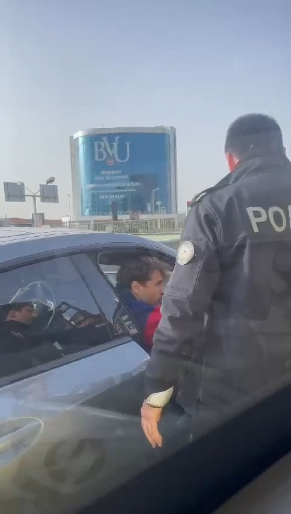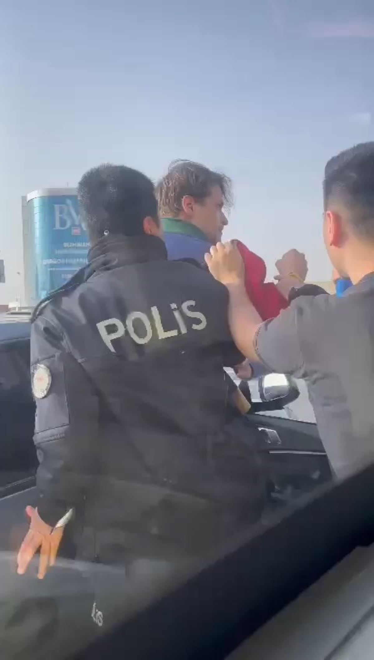 Polisin tutmasına rağmen sinirlerine hakim olamayan oyuncu, otobüsü yumruklamaya devam etti.