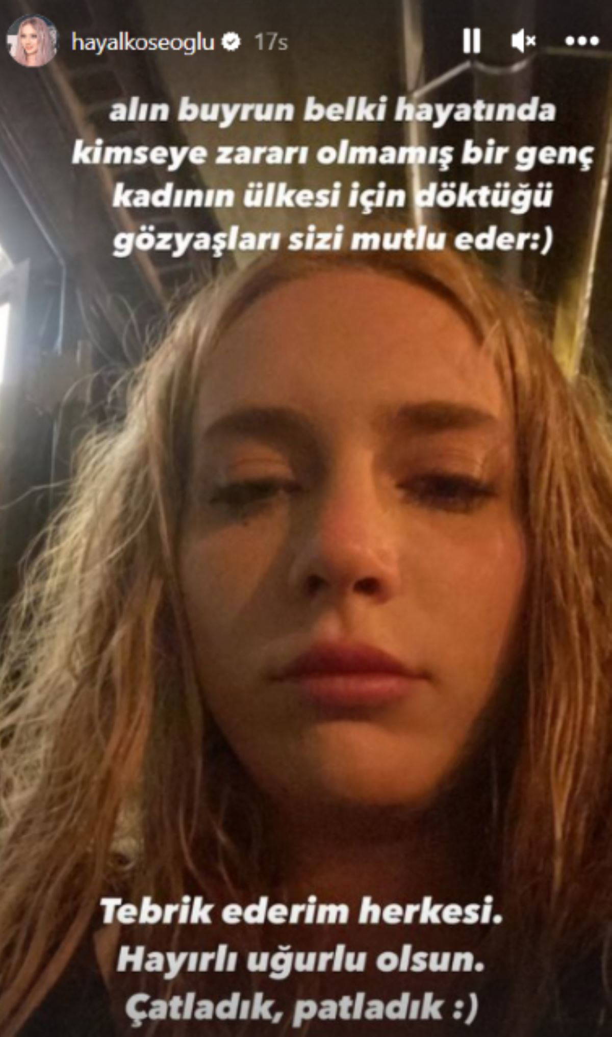 "Aşk-ı Memnu", "Muhteşem Yüzyıl" ve "Mucize Doktor" dizilerindeki rolleriyle hafızalara kazınan başarılı oyuncu Hayal Köseoğlu, sosyal medya hesabından seçime ilişkin dikkat çeken paylaşımda bulundu.