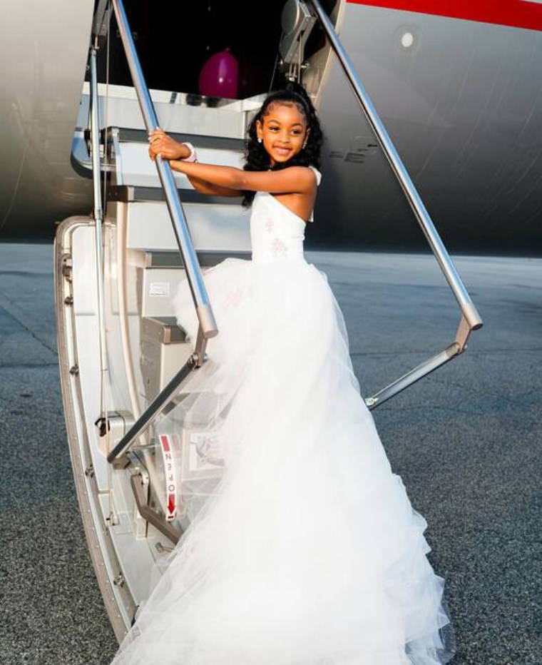 Grammy ödüllü rapçinin kızı Kulture, tül etekli ve upuzun kuyruklu beyaz elbisesiyle poz verdi.