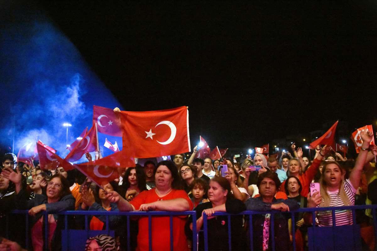 Aliağa Belediyesi tarafından düzenlene kutlamada, Türk pop müziğinin efsane isimlerinden Nilüfer, unutulmaz şarkılarını cumhuriyet için söyledi.