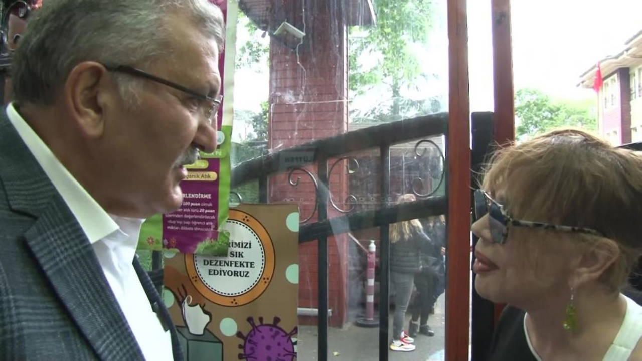 Okulun çıkış kapısında Beykoz Belediye Başkanı Murat Aydın ile karşılaşan Aksu, başkan Aydın ile küçük bir sohbet gerçekleştirdi.