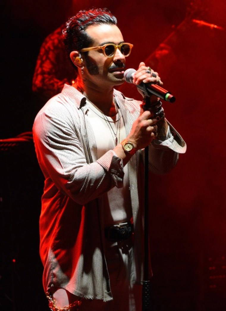 Sahne kombinini güneş gözlüğüyle tamamlayan Gökhan Türkmen'e ayrıca aynı şekilde orkestra arkadaşları da eşlik etti.