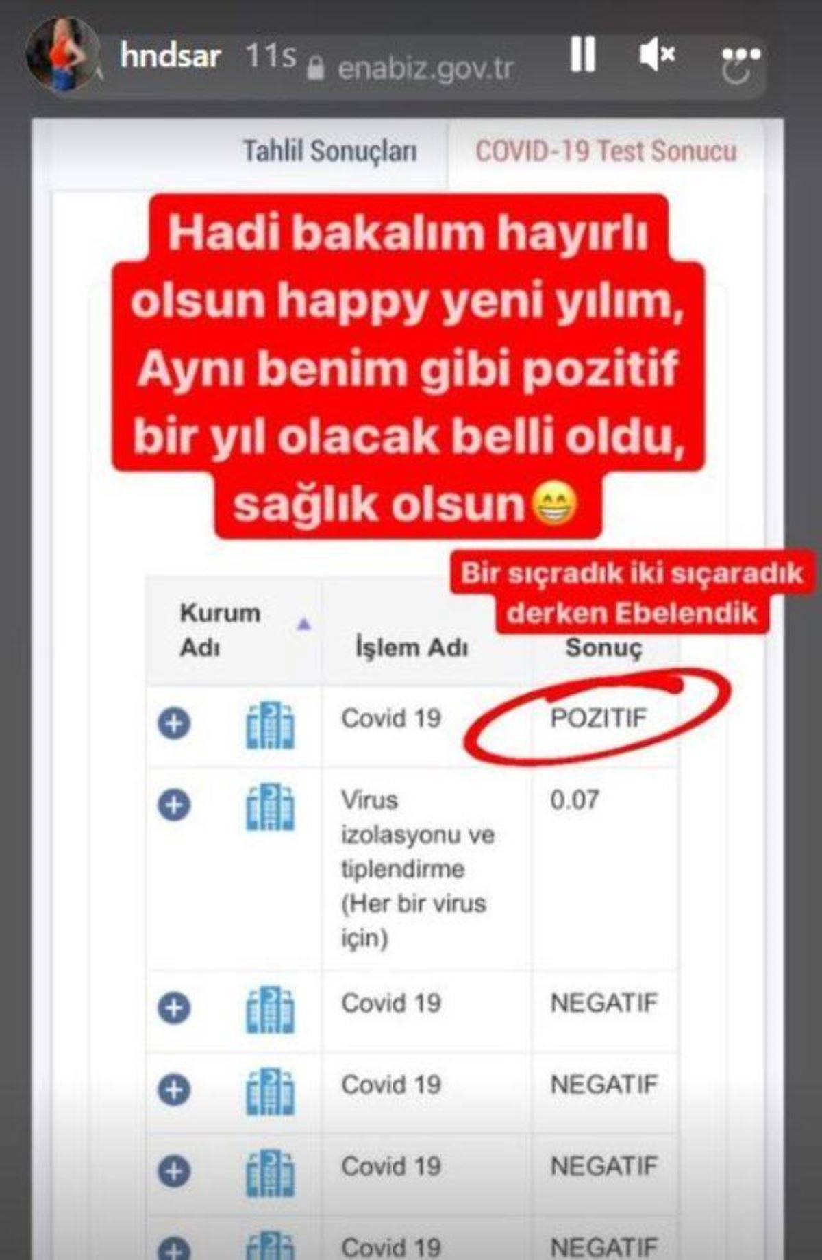 Sarıoğlu, Covid 19 testinin pozitif çıktığını ''Bir sıçradık iki sıçradık derken ebelendik'' notuyla duyurdu.