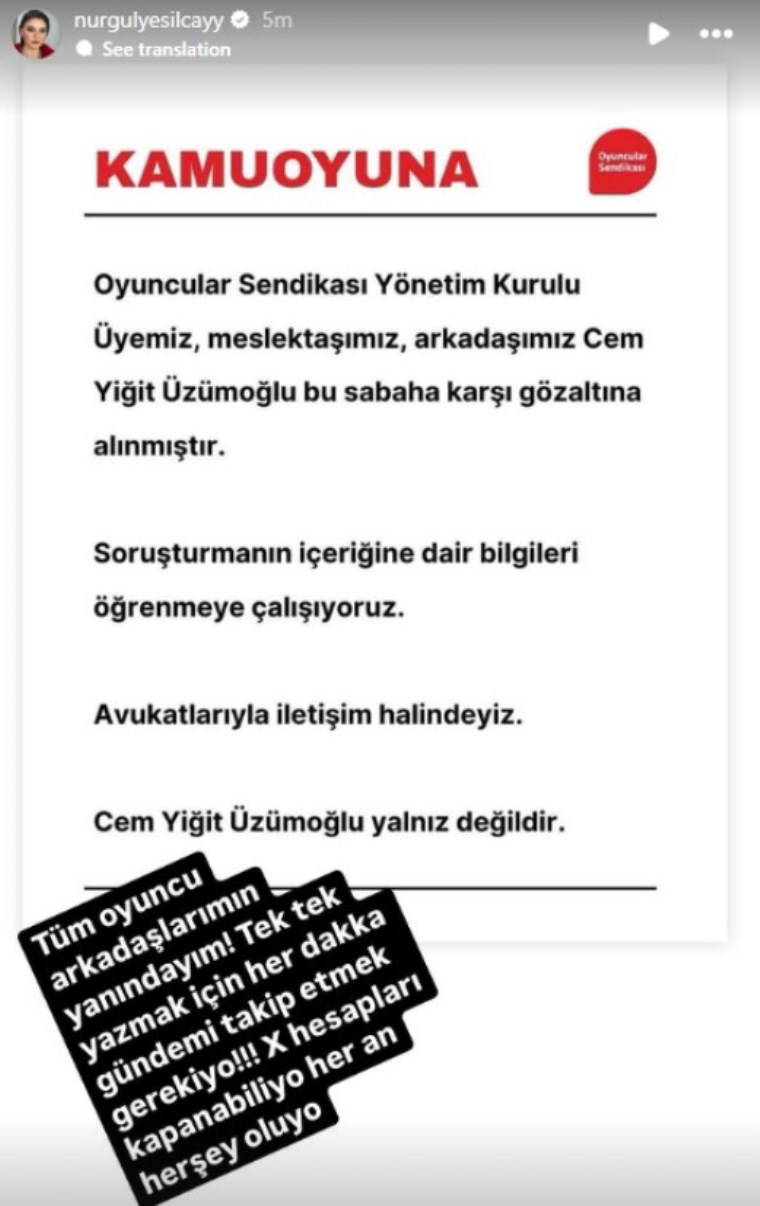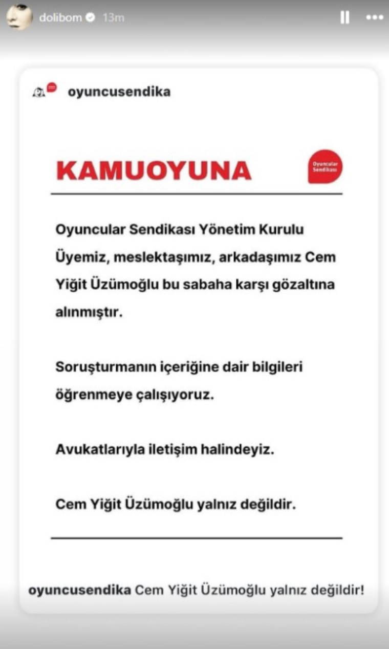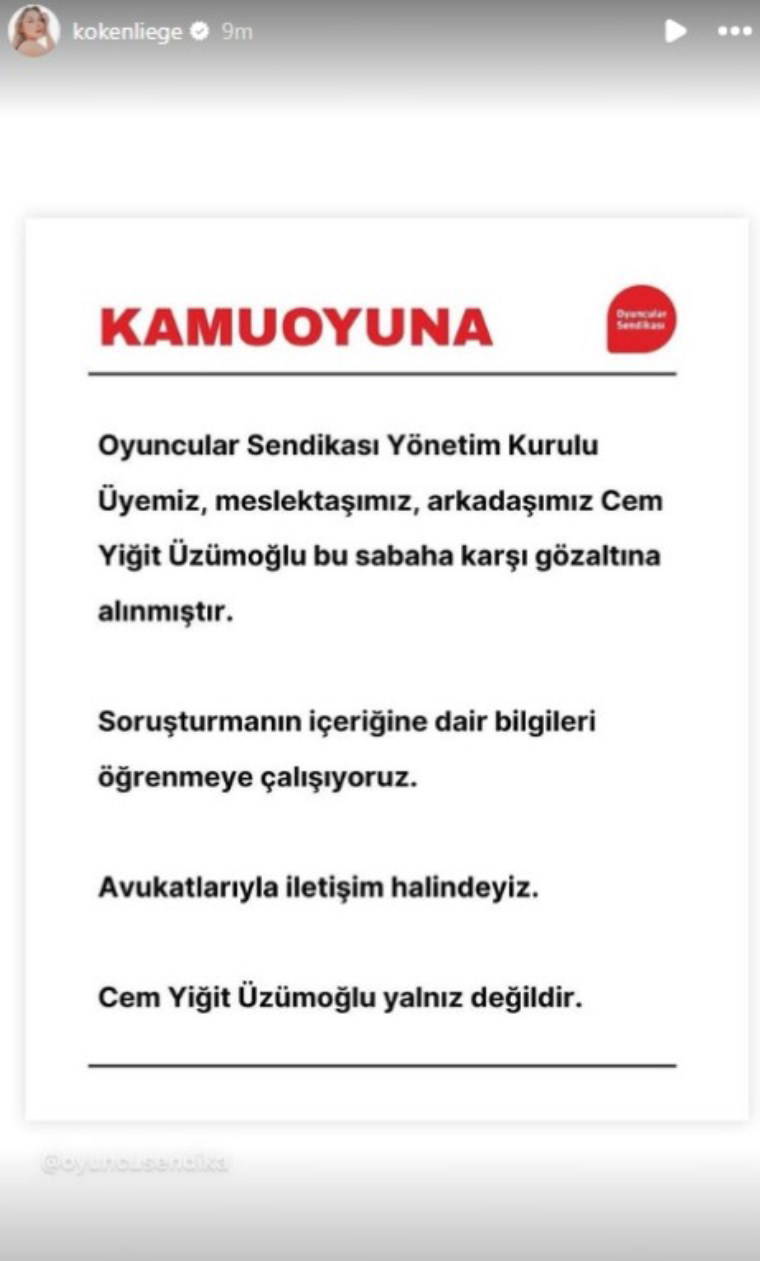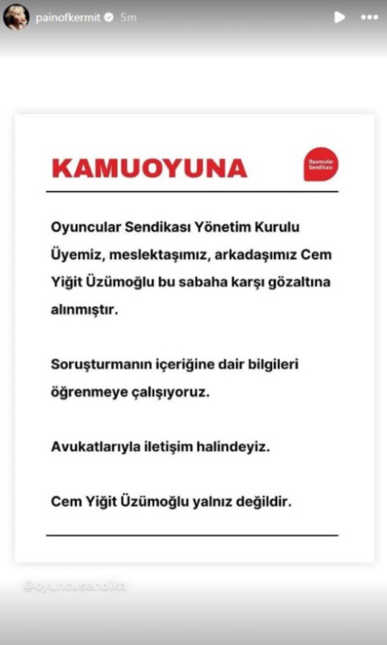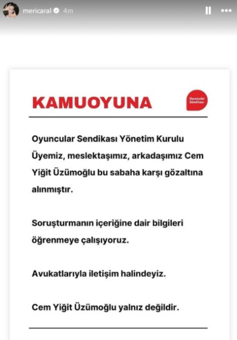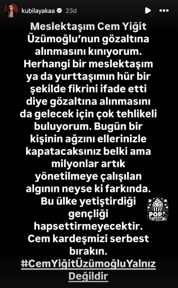 Cem Yiğit Üzümoğlu'nun gözaltına alınmasının ardından birçok ünlü isim karara sosyal medya hesabından tepki gösterdi.