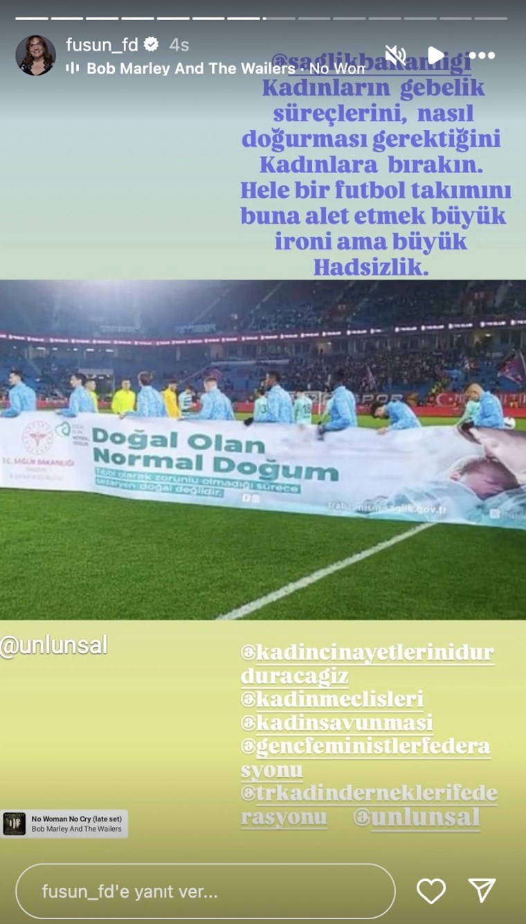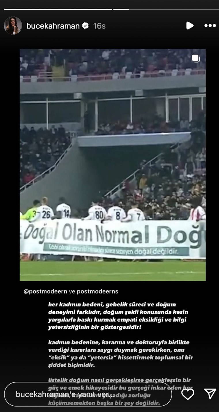 Pankartın, erkek futbolcular tarafından taşınması, başta kadın izleyiciler olmak üzere birçok kişiyi kızdırdı. Sosyal medyada yapılan yorumlarda, "O zaman siz öyle doğurursunuz" ve "Bu nasıl bir akıl?" gibi ifadelerle mesajın anlamı sorgulandı. Birçok kişi, erkek egemen bir spor dalında, erkek futbolcuların kadın bedenine dair bir tercih hakkında kamu spotu taşımalarının "dayatmacı" ve "ayarsız" olduğunu belirtti.