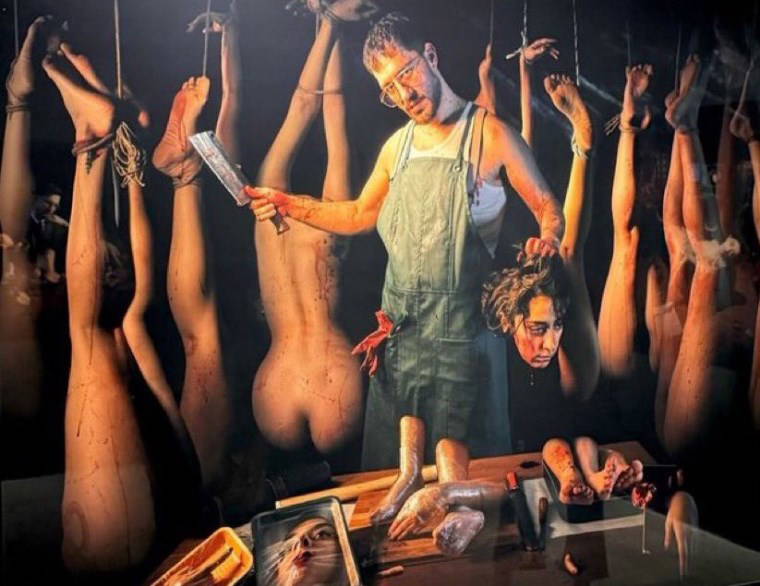 Ancak sergi için verilen pozlar kısa sürede gündem oldu. Özellikle Uraz Kaygılaroğlu'nun elinde kasap bıçağı, sevgilisinin kesik kafasını tutuğu poz tartışma yarattı.