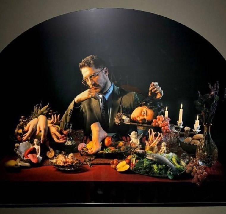 Yine aynı konseptte, bu sefer bir takım elbiseyle sofrada sevgilisinin kesik kafasıyla oturduğu pozu da sosyal medya kullanıcılarını fazlasıyla rahatsız etti.