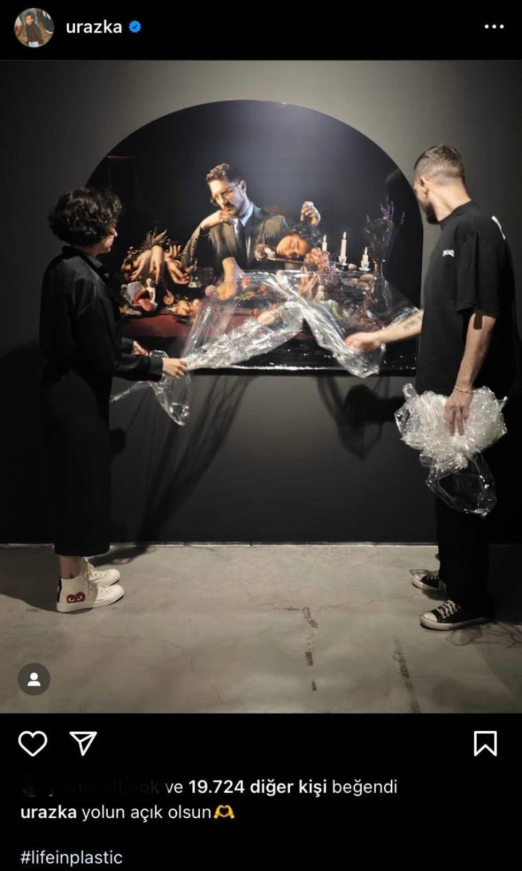 Sergideki tablosunun yanı başında sevgilisiyle birlikte poz veren Uraz Kaygılaroğlu bu pozu takipçileriyle de paylaşmayı ihmal etmedi. 36 yaşındaki ünlü ismin ‘yolun açık olsun’ notunu düştüğü karesini yoruma kapatması dikkat çekti.