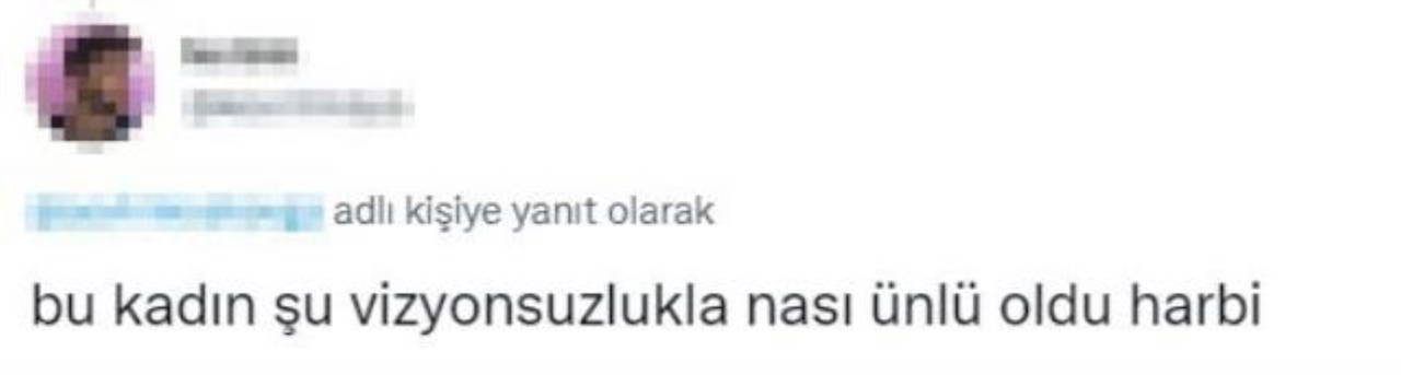 Öte yandan yaptığı paylaşımın sosyal medya kullanıcıları tarafından büyük ilgi görmesinin ardından bir sosyal medya kullanıcısı da şarkıcıyı hedef alarak "Bu kadın şu vizyonsuzlukla nasıl ünlü oldu harbi" dedi.
