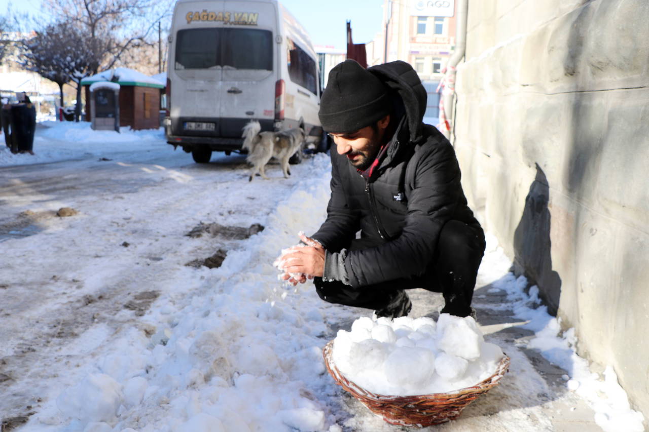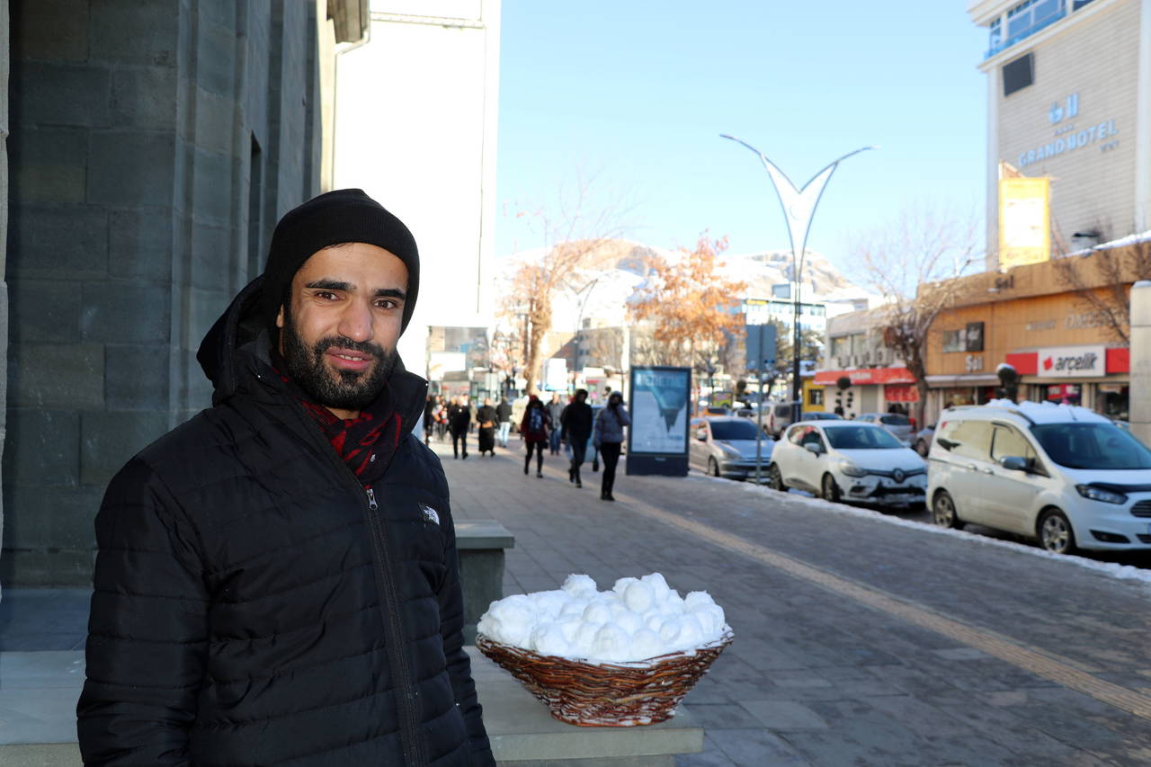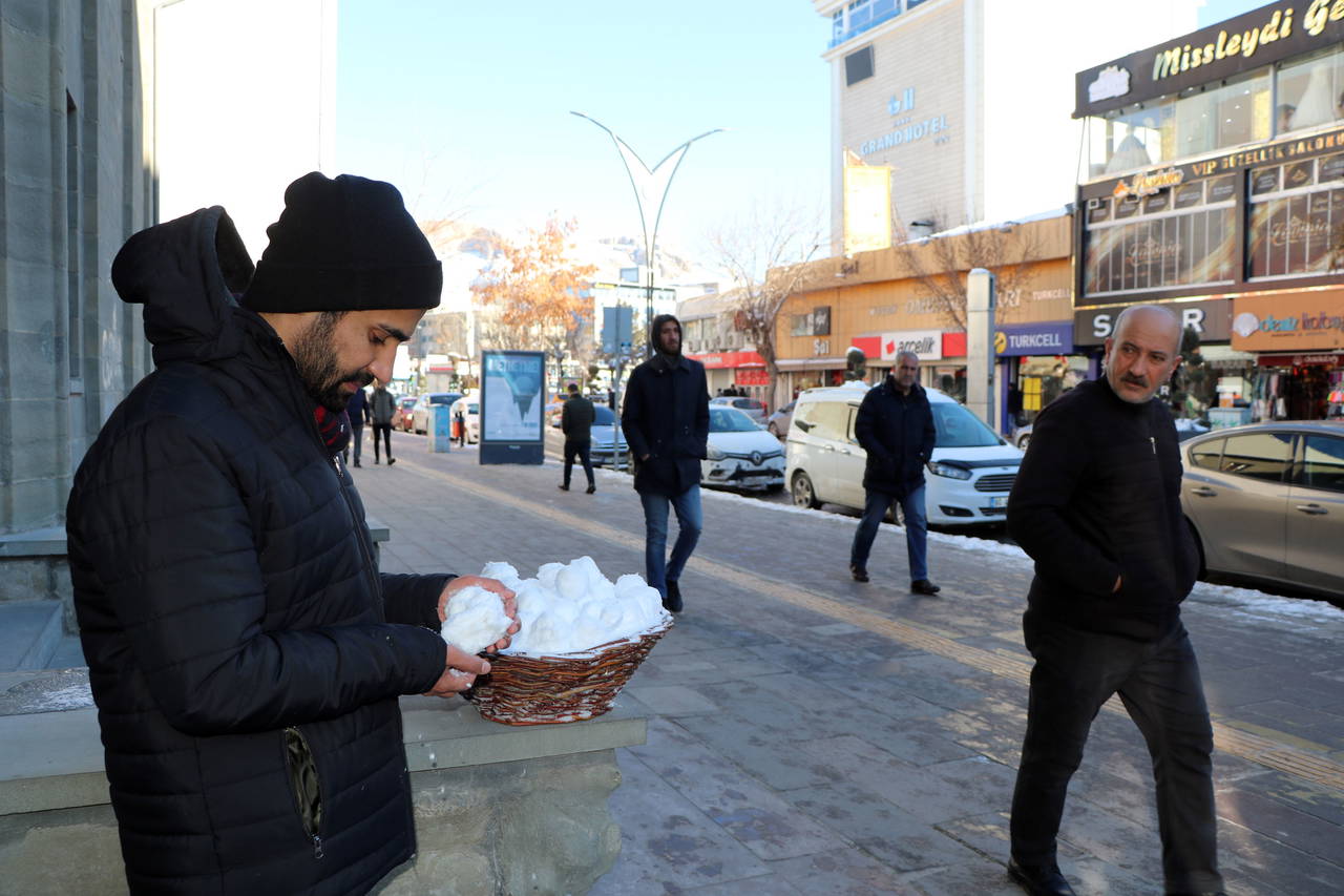 9 Ocak'ta etkili olan ve onlarca kırsal mahallenin yolunu kapatan kar yağışının ardından Cumhuriyet Caddesi'ne çıkan Onuk, kar topladı. Karı toplara dönüştürüp, caddeden geçenlere veren Onuk, suyu azalan Van Gölü ile barajları anlattı.