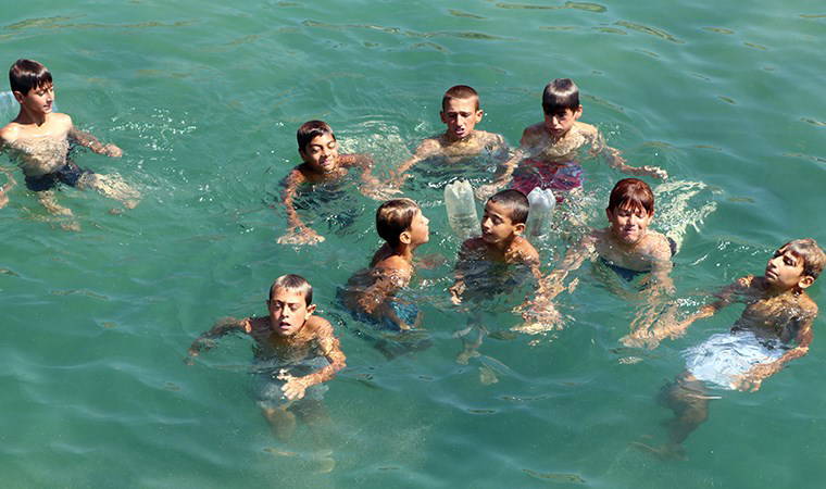 Dünyanın en büyük sodalı gölü, Türkiye'nin ise en büyük gölü olan Van Gölü'nün kıyı şeridi, yaz mevsimlerinde Ege ve Akdeniz sahillerini aratmıyor. Denizden yüksekliği 1700 metre, yüzölçümü 3 bin 713 kilometrekare, derinliği 451 metreyi bulan Van Gölü, doğal güzellikleri ve saklı koylarıyla dikkat çekiyor. Van Gölü'nün kıyısındaki yerleşim yerlerinde yaşayan çocuklar da yaz mevsimi ile göle giriyor.