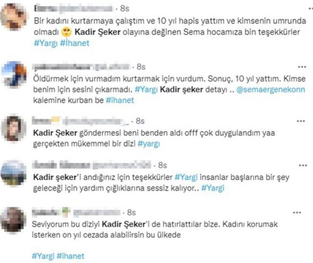 Dizideki Kadir Şeker sahnesi kısa sürede Twitter'da gündem oldu. Trend listesine giren dizi için "Kadir Şeker olayı özetlendi. Yargı, yargı dağıtıyor" yorumu yapıldı.
