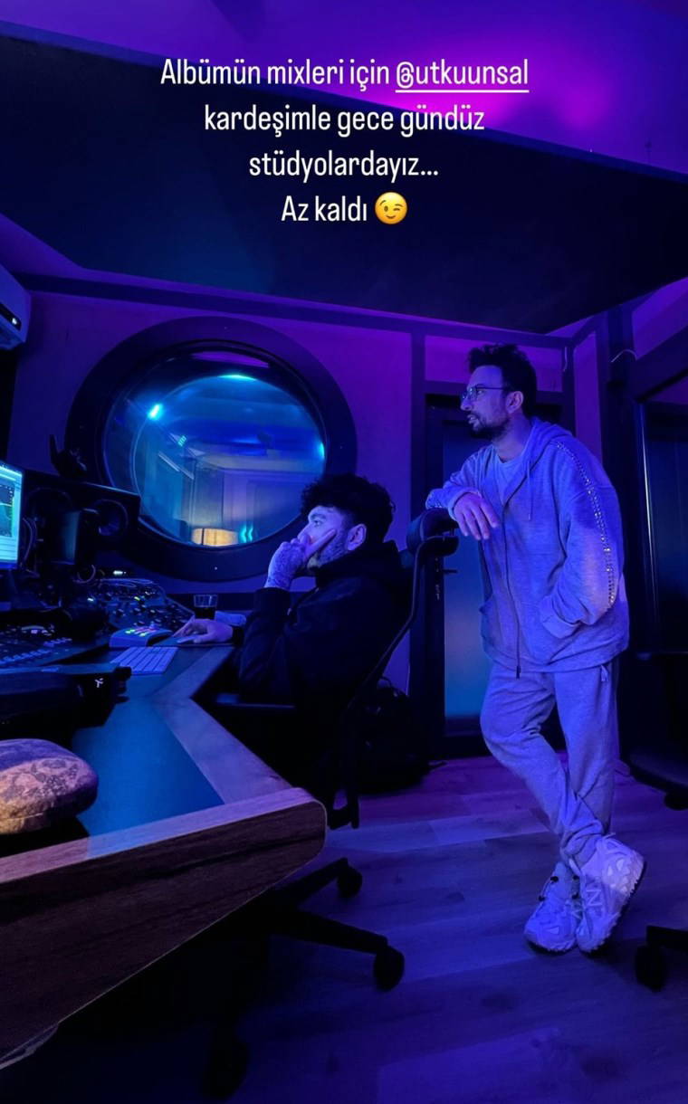 Utku Ünsal ile yeni albümü için çalışan Tarkan paylaşımına, "Albümün mixleri için Utku Ünsal kardeşimle gece gündüz stüdyolardayız. Az kaldı" notunu düştü.