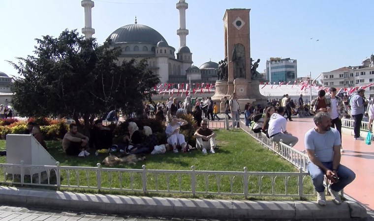 Şeker Bayramı'nın son gününde, havanında sıcak olmasını fırsat bilen yerli ve yabancı turistler Taksim Meydanı ve İstiklal Caddesi'ne akın etti.