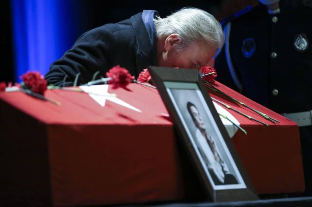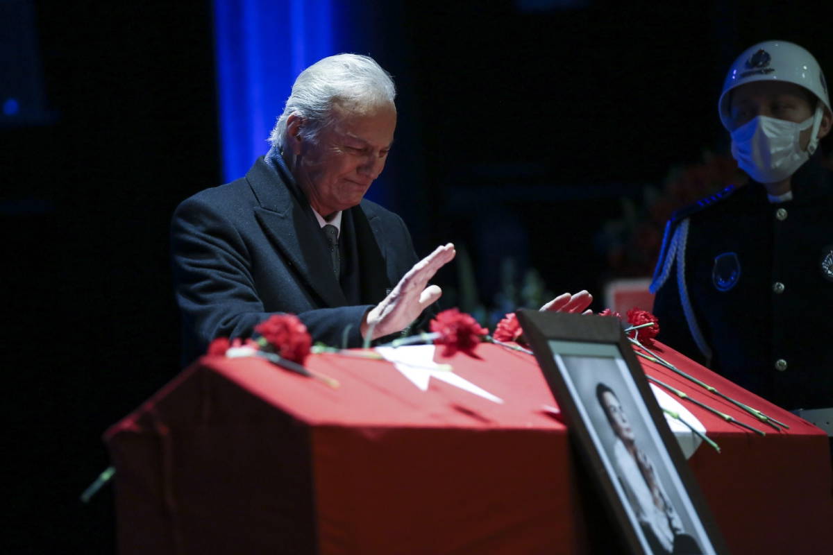 Konuşmasının ardından Girik'in sahnede duran Türk Bayrağı'na sarılı tabutunu öpen Ediz Hun, dostuna veda ettikten sonra sahneden indi.