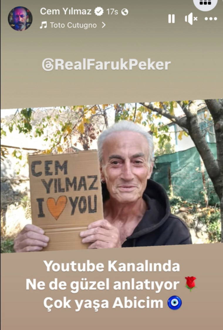 Ünlü komedyen Cem Yılmaz da sosyal medya hesabı üzerinden Faruk Peker'e destek vererek, "YouTube kanalında ne de güzel anlatıyor. Çok yaşa ağabeyim" mesajını paylaştı. Bu jest karşısında mutlu olan Peker, "Seni seviyorum Cem Yılmaz" diyerek yanıt verdi. Yılmaz’ın desteğinin kendisini çok mutlu ettiğini belirten Peker, "Yeşilçam ekolüne saygısı var. Cem Yılmaz sinema tutkunu biri, kendisiyle yan yana gelmek isterim" dedi.