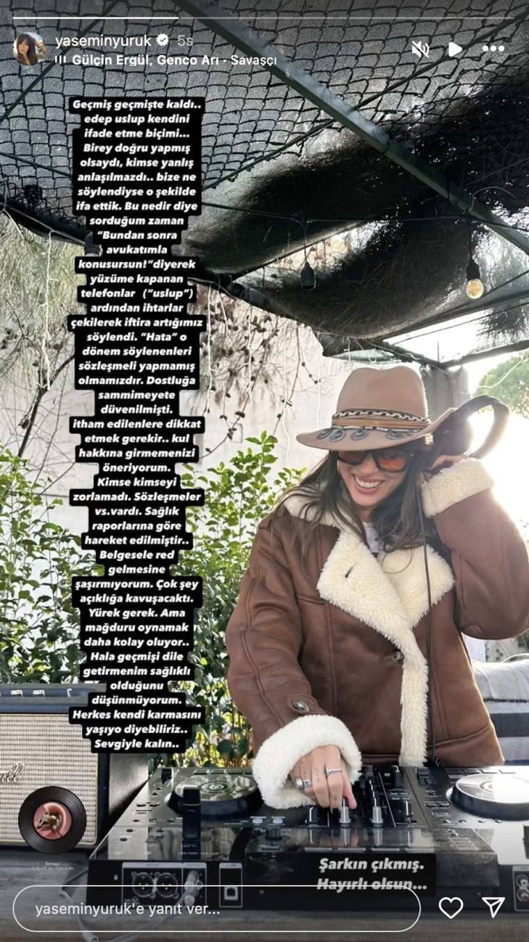 Hepsi grubunun diğer bir üyesi olan Yasemin Yürük de Ergül'e tepki gösterdi. Sosyal medya hesabından paylaşım yapan Yürük, Gülçin Ergül'ün "Savaşçı" şarkısını ekleyerek, "Geçmiş geçmişte kaldı. Birey doğru yapmış olsaydı kimse yanlış anlamazdı" dedi.